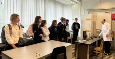 Gegužės 6 d. Lietuvos mokslų akademijos (LMA) skyriaus „Mokslininkų rūmai“ organizuotoje „Mokslo žinių dienoje“ dalyvavo Kauno Jėzuitų gimnazijos vyresniųjų klasių moksleiviai ir fizikos mokytoja ekspertė Rigonda Skorulskienė. Dviejų dalių renginys vyko Kauno technologijos universiteto (KTU) Cheminės technologijos fakultete. Šio fakulteto Polimerų chemijos ir technologijos katedros mokslo darbuotoja, LMA Jaunosios akademijos (JA) narė dr. Gintarė Kručaitė kartu su kolegomis dr. Daiva Tavgeniene ir doktorantu Dovydu Blaževičiumi moksleiviams trumpai papasakojo apie universitetą ir jame atliekamus tyrimus, išsamiai – apie organinius šviesos diodus, jų gamybą ir panaudojimą.