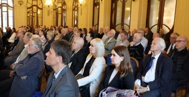 This was followed by a formal ceremony of the inauguration of two foreign members of the Lithuanian Academy of Sciences – Prof. Daniel Petit (France) and Prof. Bernhard Peters (Luxembourg). They were awarded diplomas and badges of membership of the Lithuanian Academy of Sciences. The new foreign members of the Lithuanian Academy of Sciences gave their inaugural speeches. The French linguist Daniel Petit spoke, in Lithuanian, about the Indo-European heritage in the Lithuanian language. He emphasised the importance of the Lithuanian language for Indo-European grammar. Lithuanian contains a myriad of archaisms and therefore some forms of the Lithuanian language coincide with Sanskrit forms. The analysis of the forms of Lithuanian is particularly important for etymological research. In this way, the Indo-European heritage unfolds in the Lithuanian language.