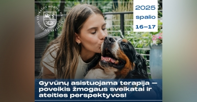 2025 m. spalio 16 d. 9.30 val. Lietuvos sveikatos mokslų universiteto Gyvūnų mokslų fakultete (Tilžės g. 18, Kaunas) vyks 3-čioji tarptautinė mokslinė konferencija ,,Gyvūnų asistuojama terapija – poveikis žmogaus sveikatai ir ateities perspektyvos“.