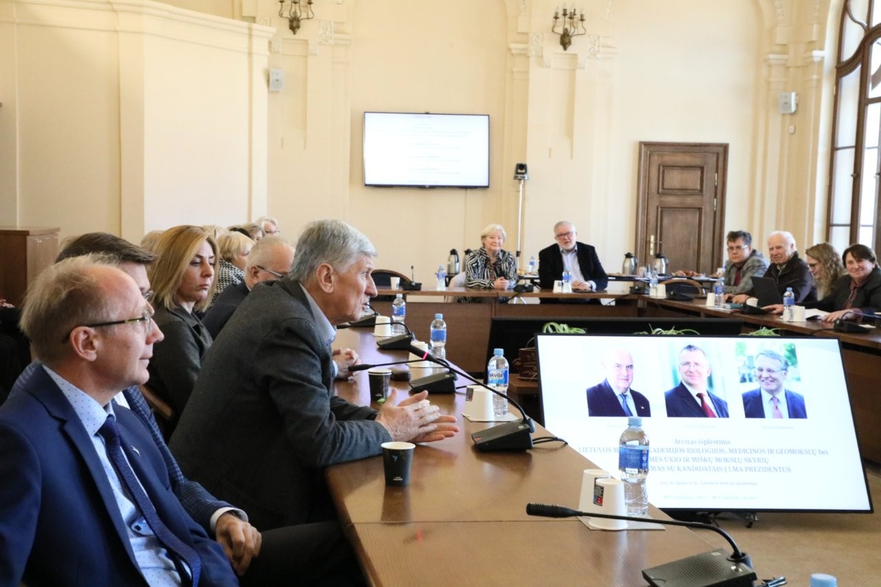 Spalio 21 d. Lietuvos mokslų akademijoje (LMA) įvyko atviras išplėstinis dviejų LMA skyrių – Biologijos medicinos ir geomokslų bei Žemės ūkio ir miškų mokslų – susitikimas su kandidatais į LMA prezidentus. Jame dalyvavo ir kitų mokslų skyrių nariai bei darbuotojai.
