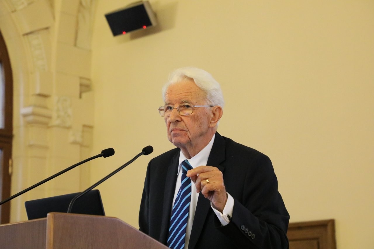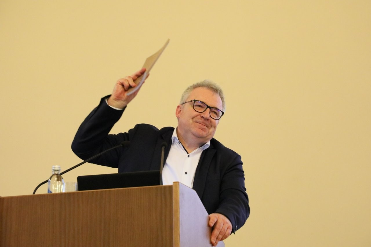 Akad. V. Daujotytė padėkojo kadenciją baigiantiems prezidentui ir viceprezidentui. Jos manymu, tai buvo teisingas vadovavimas, be revoliucijų. Ji taip pat atliko savianalizės įžvalgas. Ją įtikino kandidato į LMA prezidentus V. Nekrošiaus mokslinė sritis. Pasak akademikės, svarbu, kad jis yra senosios romėnų teisės specialistas. Jo pamatai susieti su seniausia ir Europai labai svarbia teisės sistema (in propria persona: asmeniškai, savo rizika). „Todėl akademija gali tikėtis tokio rūpinimosi ja, kaip kandidatas rūpinasi savo gausia šeima, kas savaitę parvilkdamas mamutą“, – reziumavo V. Daujotytė.