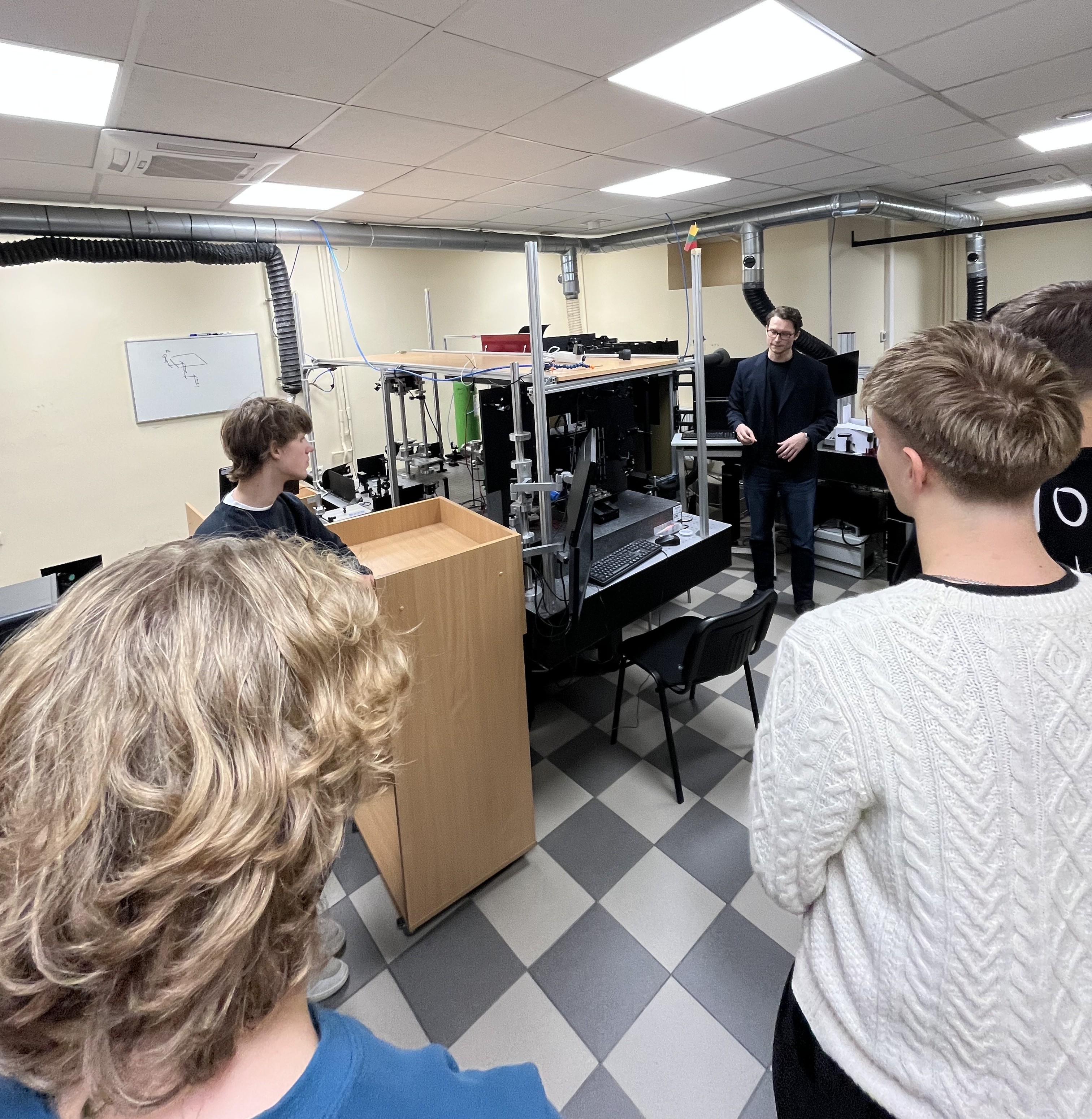 Ekskursijos metu moksleiviai turėjo galimybę pamatyti trumpiausius impulsus Lietuvoje generuojančią lazerinę sistemą: doktorantas Gaudenis Jansonas pristatė didelio intensyvumo lazerių kompleksą „Naglis“ ir papasakojo apie iššūkius, su kuriais susiduriama kuriant tokias sudėtingas lazerines sistemas.