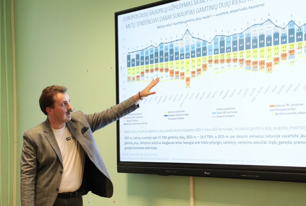 Spalio 23 d. Vilniaus universiteto Geomokslų institute vyko Lietuvos mokslų akademijos (LMA) Klimato komisijos seminaras-diskusija „Klimatui neutrali energetika: virsmo kelias“. Seminare pranešimus skaitė ir diskusijoje dalyvavo VšĮ Lietuvos energetikos agentūros direktorė Agnė Bagočiutė bei šios įstaigos darbuotojai: Energetikos duomenų analizės centro analitikas Dovydas Balčiūnas, Klimato kaitos valdymo centro vadovas Tadas Norvydas ir Vėjo energetikos Baltijos jūroje vystymo skyriaus vadovas Roman Bykov. Renginį moderavo LMA Klimato komisijos pirmininkas Arūnas Bukantis (vienas iš šio teksto autorių).