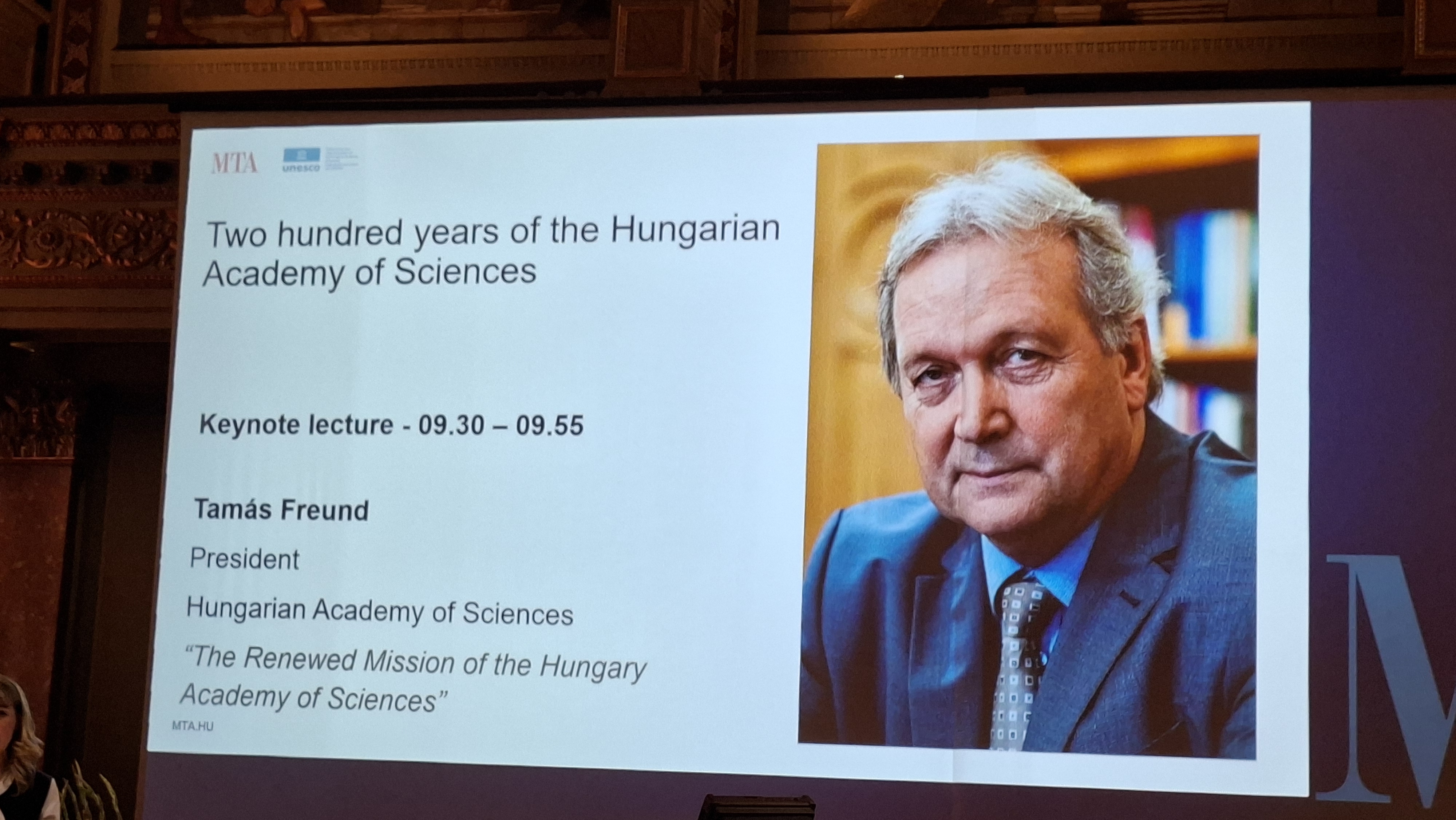 Lapkričio 4 d. atnaujintoje Vengrijos mokslų akademijos, esančios Sėčenio aikštėje, ceremonijų salėje vyko tarptautinė konferencija, skirta Vengrijos mokslų akademijos 200-osioms metinėms. Joje dalyvavo 51 atstovas iš 36 šalių akademinių institucijų.