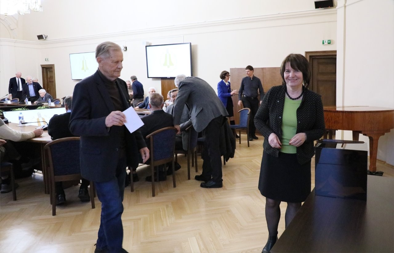 Balsuoja akad. Kęstutis Sasnauskas ir akad. Aurelija Žvirblienė.