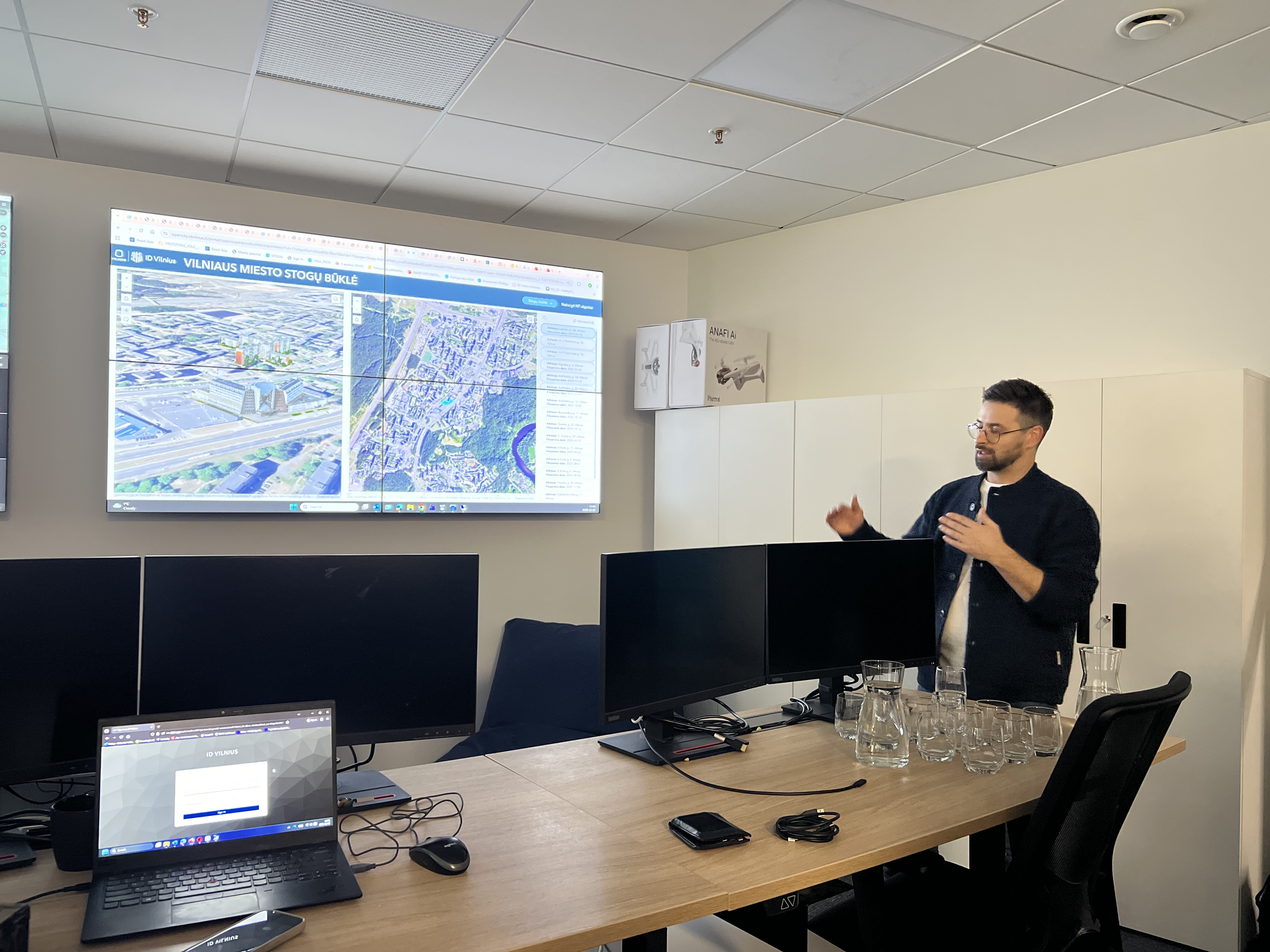 Pirmiausia Jaunosios akademijos nariai apsilankė „ID Vilnius“ – Vilniaus savivaldybės įmonėje, diegiančioje skaitmenines technologijas miesto valdymui. Duomenų valdymo grupės vadovas Stasys Savilionis pristatė modernius įrankius, tokius kaip GIS, dronų fiksuojami vaizdai ir duomenų analizės sistemos, padedančius priimti duomenimis grįstus sprendimus. Šie sprendimai leidžia optimizuoti miesto infrastruktūrą ir užtikrinti tvarią plėtrą – nuo eismo valdymo iki žaliųjų zonų priežiūros.