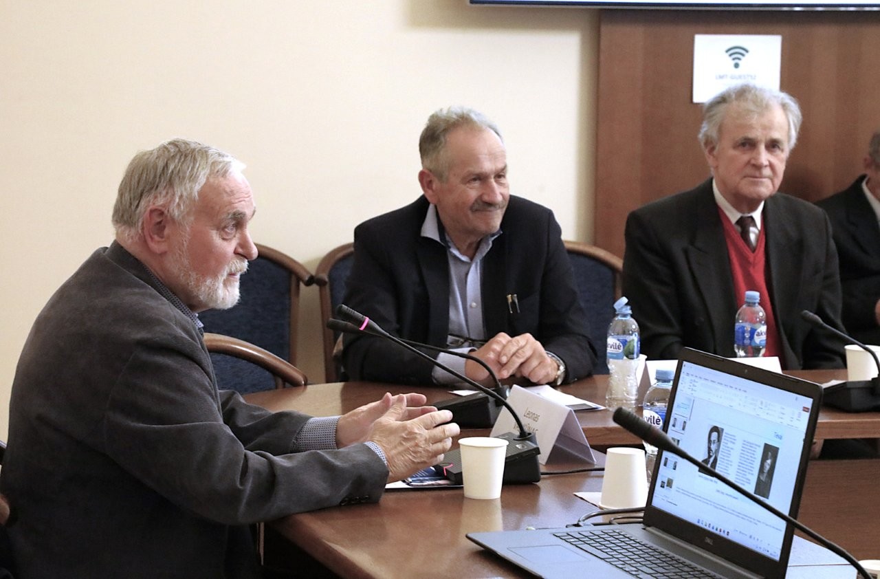 Iš kairės: renginio vedėjas akad. Leonas Valkūnas, LMA viceprezidentas akad. Zenonas Dabkevičius ir dr. Romualdas Brazys.