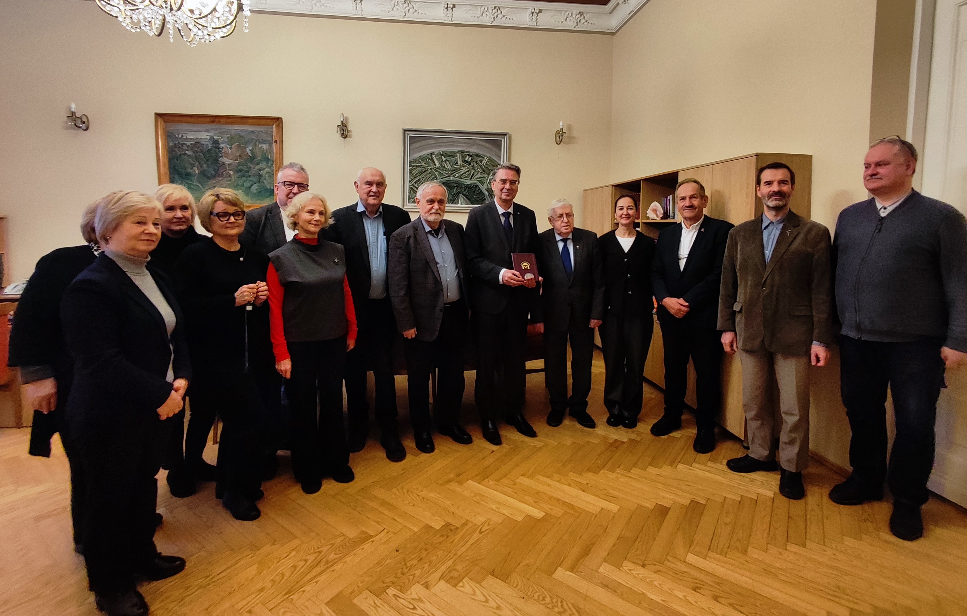 Lietuvos Ignoto Domeikos draugijos prezidentas akademikas Algimantas Grigelis akad. J. Baniui įteikė mineralogo ir švietėjo Ignoto Domeikos atminimo medalį (dailininkas Petras Repšys).