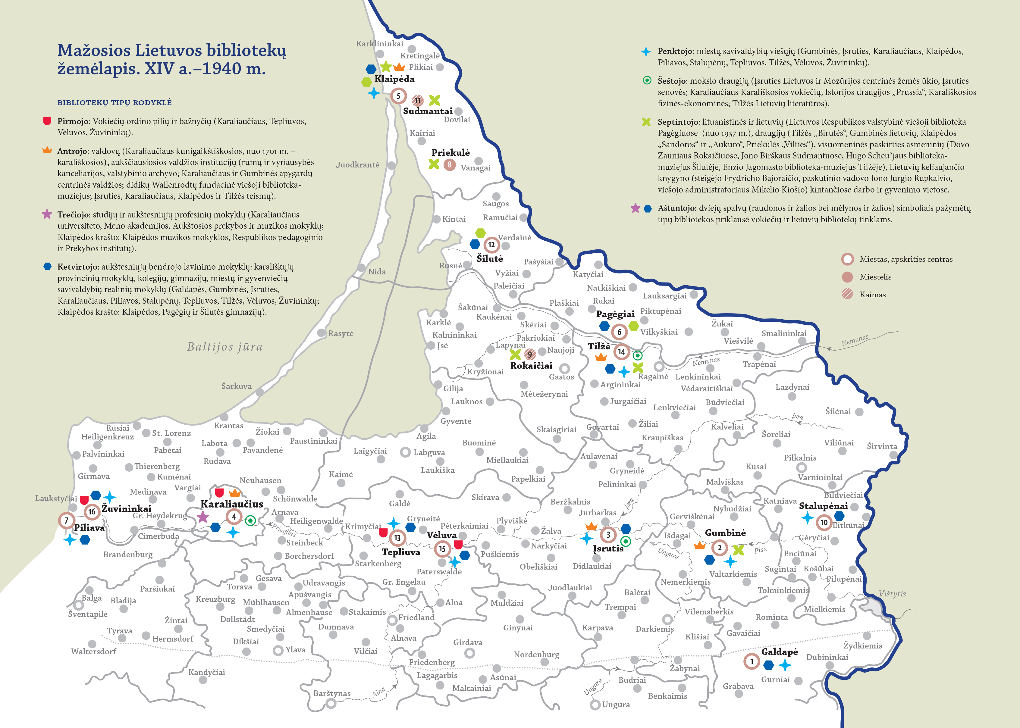 Domo Kauno sudarytas „Mažosios Lietuvos bibliotekų žemėlapis. XIV a.–1940 m.“.