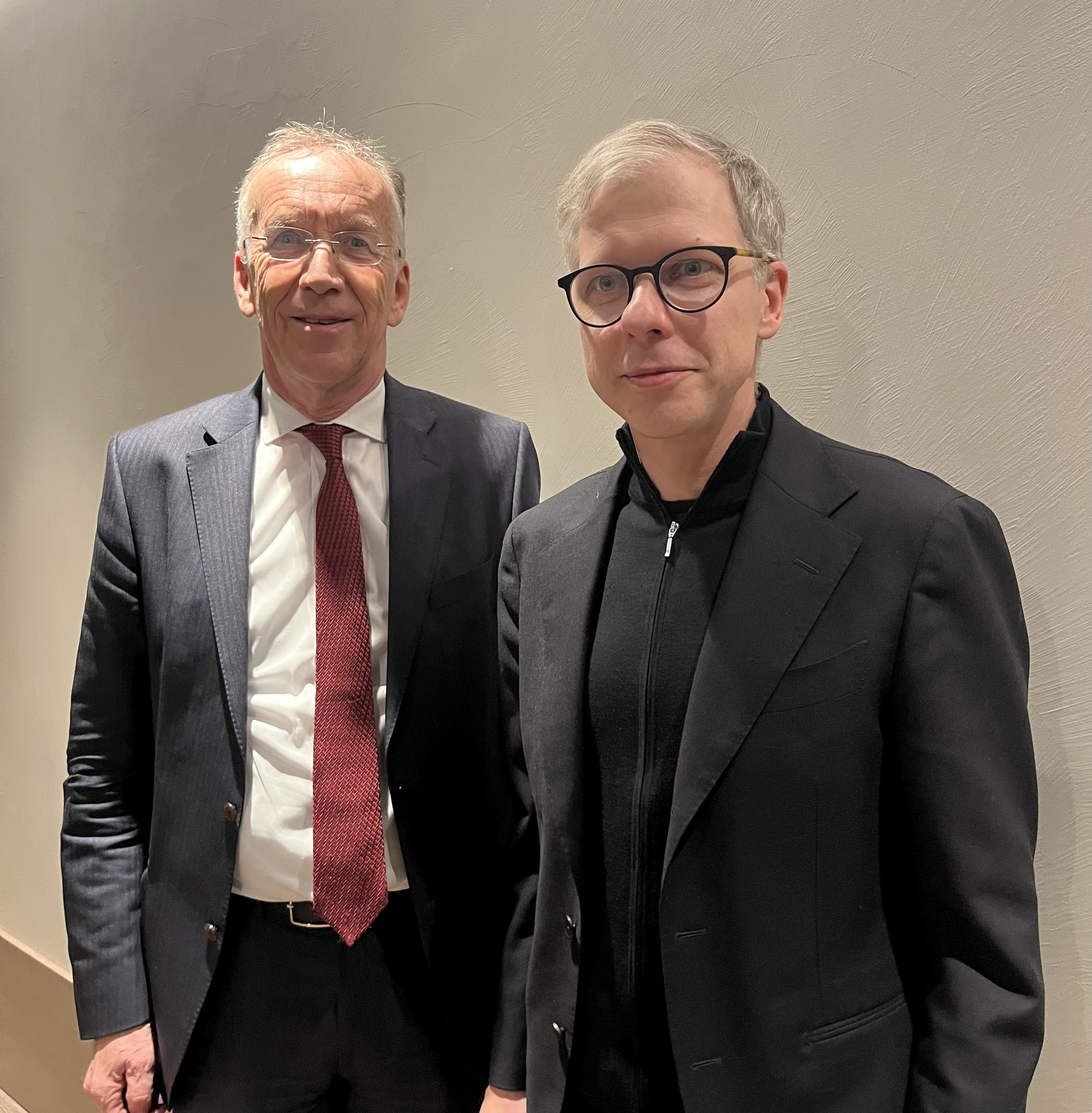 Prof. Ansgaras Lozė ir LMA Jaunosios akademijos alumnas, LSMU prorektorius mokslui prof. Juozas Kupčinskas.