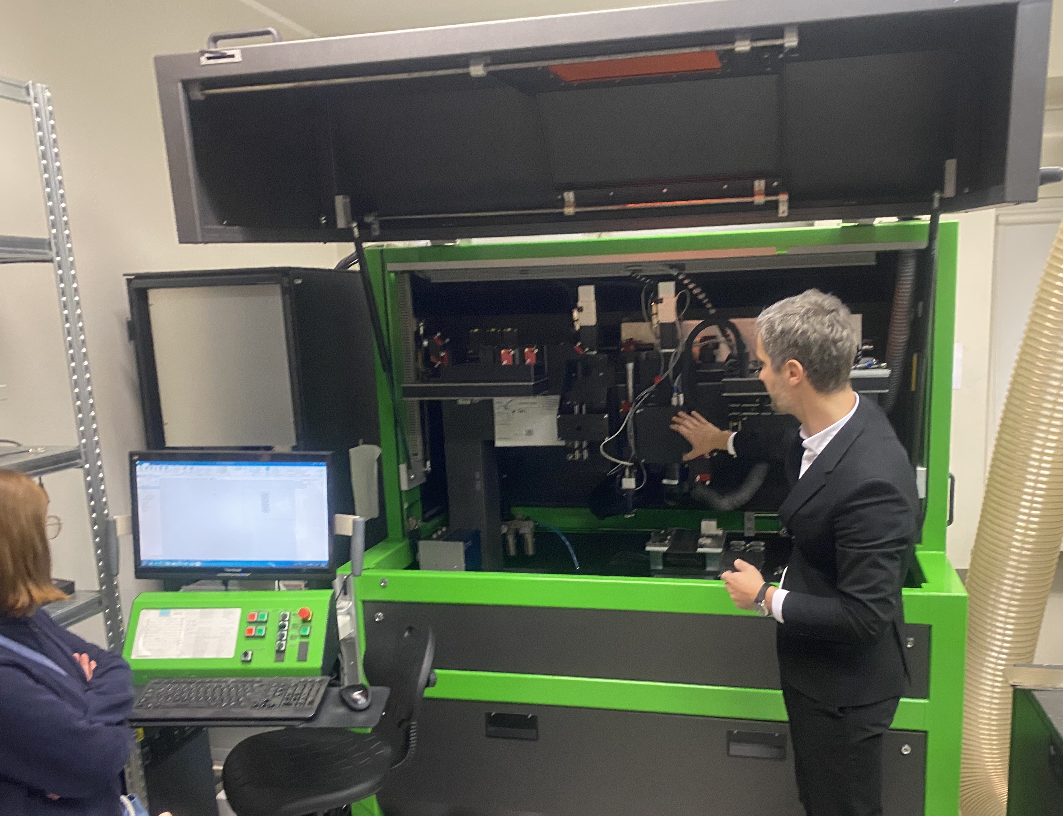 Aplankę lazerinio mikroapdirbimo laboratorijas, mokiniai pamatė pusiau industrines stakles, kuriose naudojami skirtingų tipų lazeriai, kurių spinduliuotė yra griežtai apibrėžto bangos ilgio ir impulsinė. Mokslininkas pabrėžė, kad femtosekundiniai impulsai leidžia momentiškai pakelti medžiagos temperatūrą daugiau nei 10 000 °C ir taip apdirbti net skaidriausią deimantą. Šis procesas vadinamas šaltąja abliacija, kai „dirbama labai intensyviai, tačiau termiškai beveik nepaveikiamas bandinys“.
