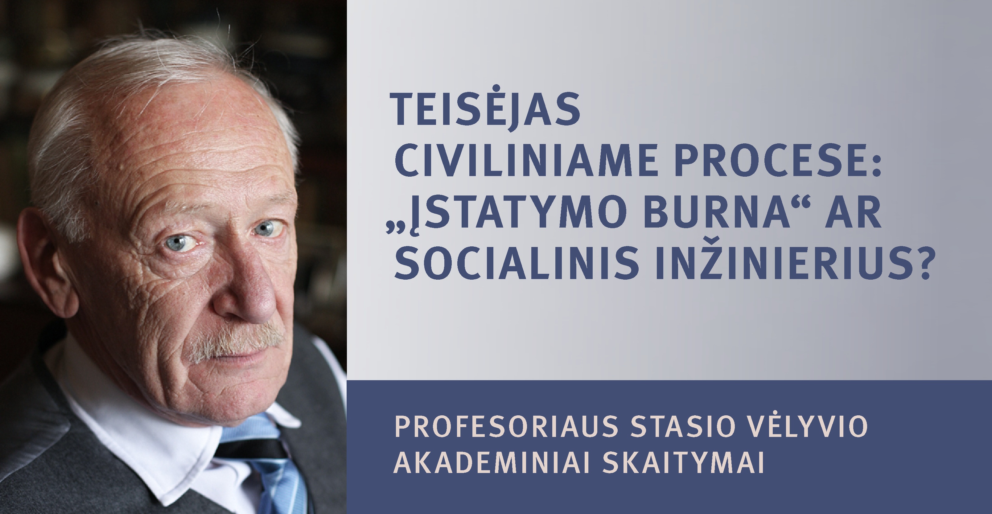 2026 m. kovo 16 d. (pirmadienį) 10 val. Lietuvos mokslų akademijos Mažojoje konferencijų salėje (Gedimino pr. 3, Vilnius) vyks profesoriaus Stasio Vėlyvio akademiniai skaitymai „Teisėjas civiliniame procese: „įstatymo burna“ ar socialinis inžinierius?“.