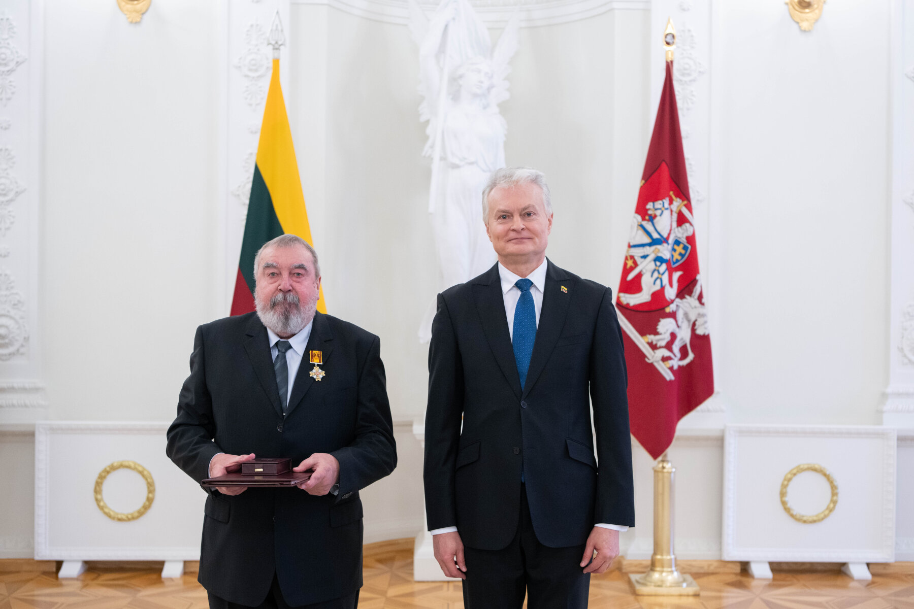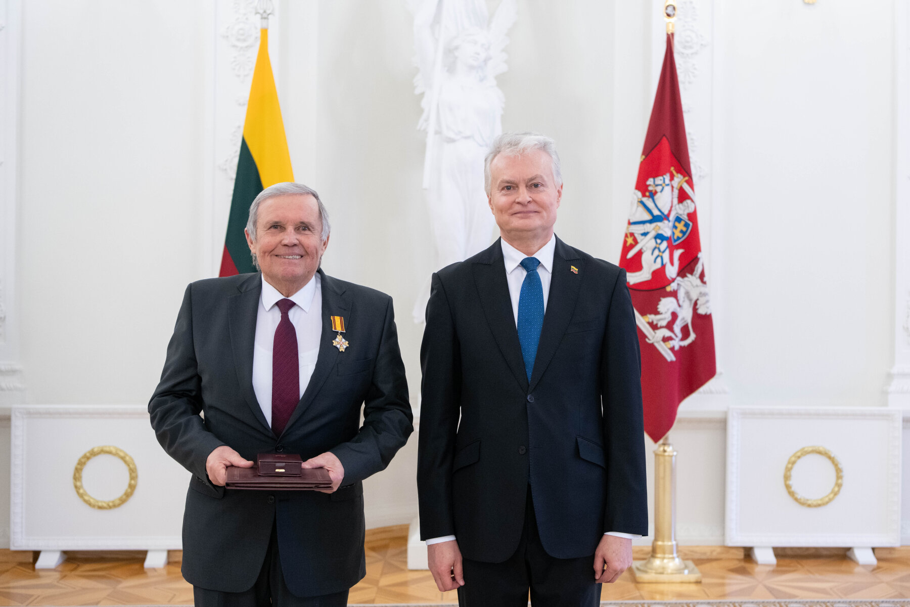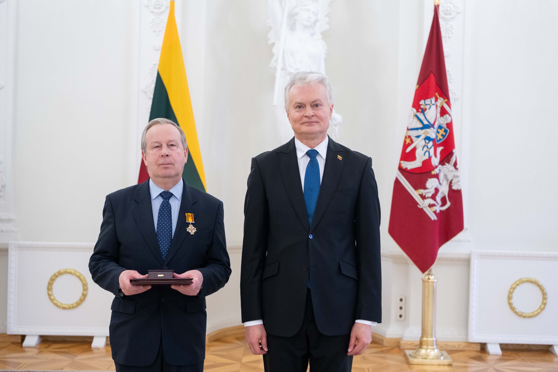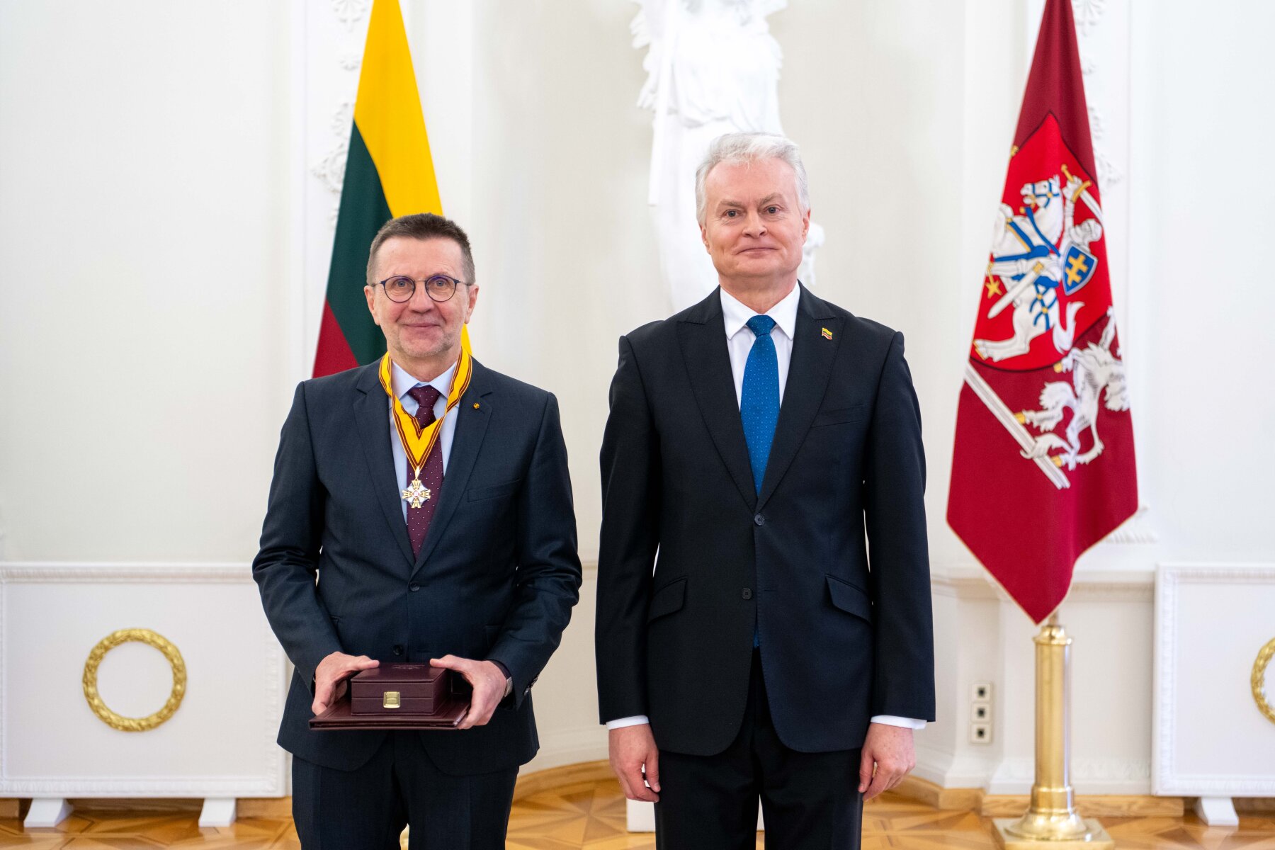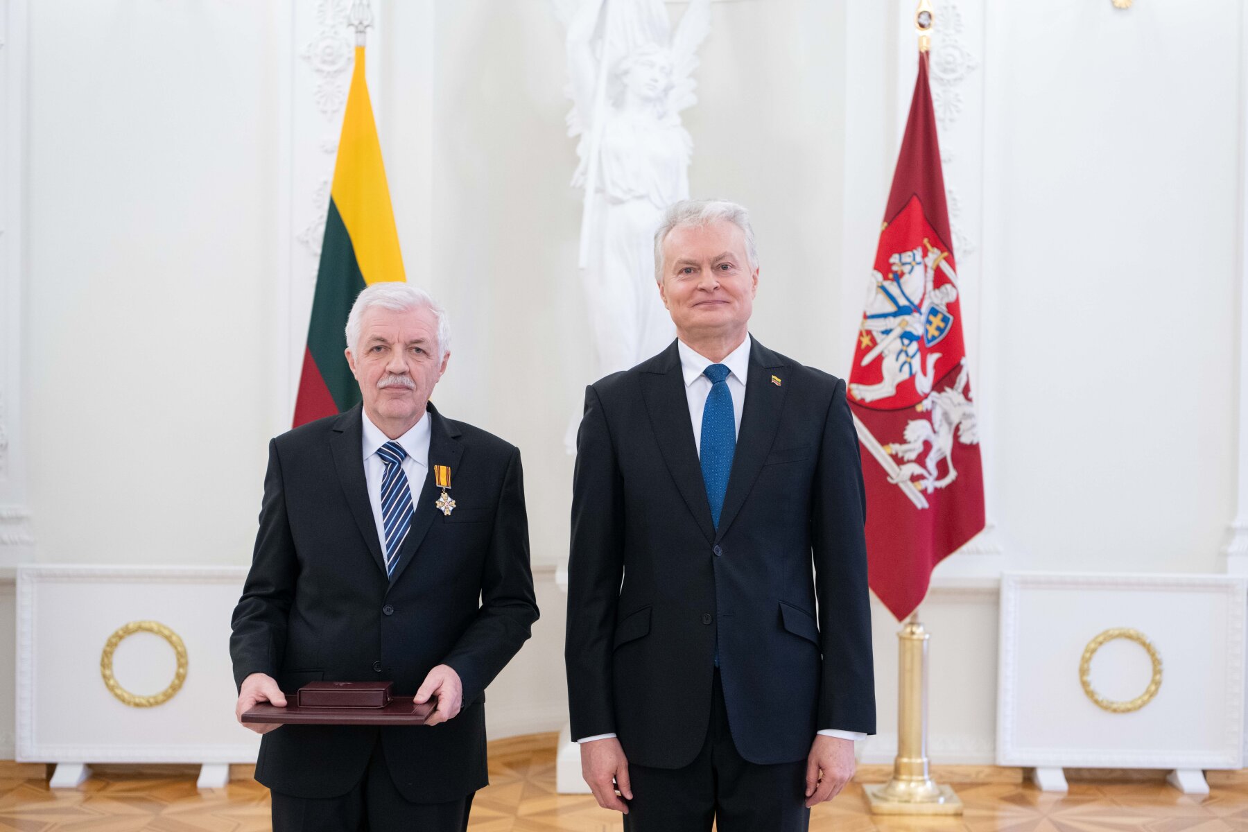 Lietuvos didžiojo kunigaikščio Gedimino ordino Riterio kryžiumi apdovanoti fizikas, habilituotas daktaras akad. Vidmantas Gulbinas už nuopelnus Lietuvos mokslui organinių ir hibridinių puslaidininkių fizikos srityje