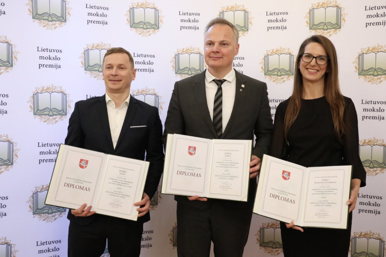 LMP laureatai: Ovidijus Šernas, Audrius Vaitkus ir Judita Škulteckė (Gražulytė).