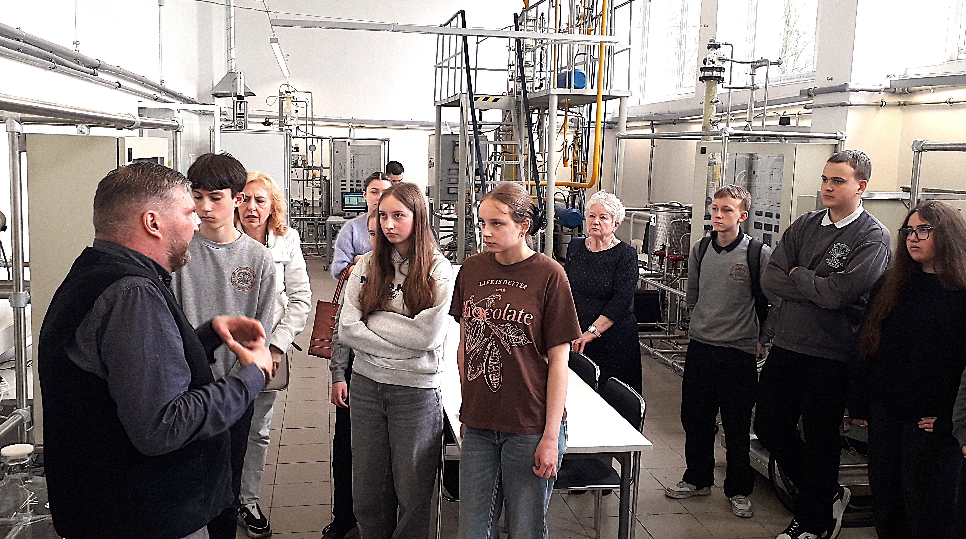 Mokiniai turėjo galimybę apsilankyti KTU Cheminės technologijos fakulteto Procesų inžinerijos laboratorijose, kur ekskursiją vedė dr. A. Eisinas. Vizito metu buvo pabrėžta procesų inžinerijos svarba, ypatingą dėmesį skiriant tirpiklių, tokių kaip etanolis, vaidmeniui pramonėje. Pažymėta, kad etanolis yra vienas plačiausiai naudojamų tirpiklių pasaulyje po vandens. Jis gali būti gaunamas dviem būdais: biologiniu – fermentuojant cukringas žaliavas (javus, grūdus, kukurūzus, bulves ir kt.) – arba cheminiu būdu iš gamtinių dujų.