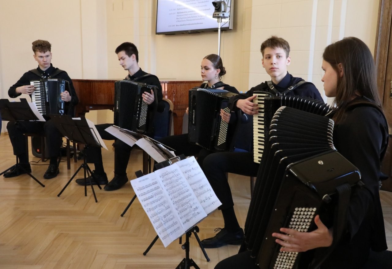 Vilniaus Balio Dvariono muzikos mokyklos akordeonistų kvinteto muzikinis pasirodymas.